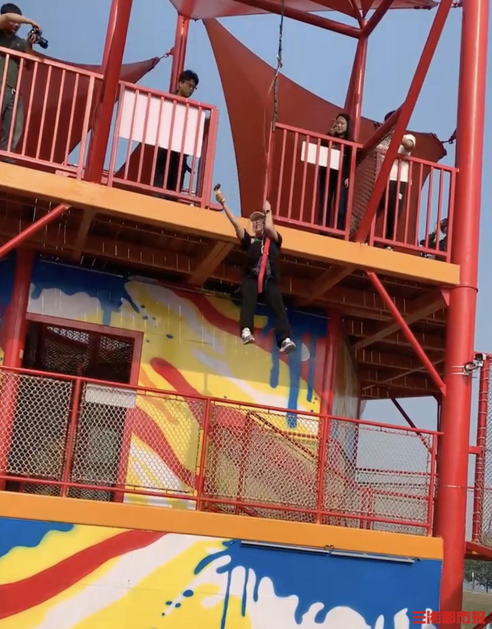 在长沙石燕湖景区◈★✿,记者也见到了类似项目◈★✿。石燕湖蹦极原本位于80米高的关云桥上◈★✿,是国内第一台人行悬索木板桥蹦极◈★✿。为降低挑战门槛◈★✿,景区特别研发了“慢速弹降系统”◈★✿,通过控制下降速度和弹性幅度◈★✿,让“不敢玩”的人也能“体验飞跃的感觉”◈★✿。